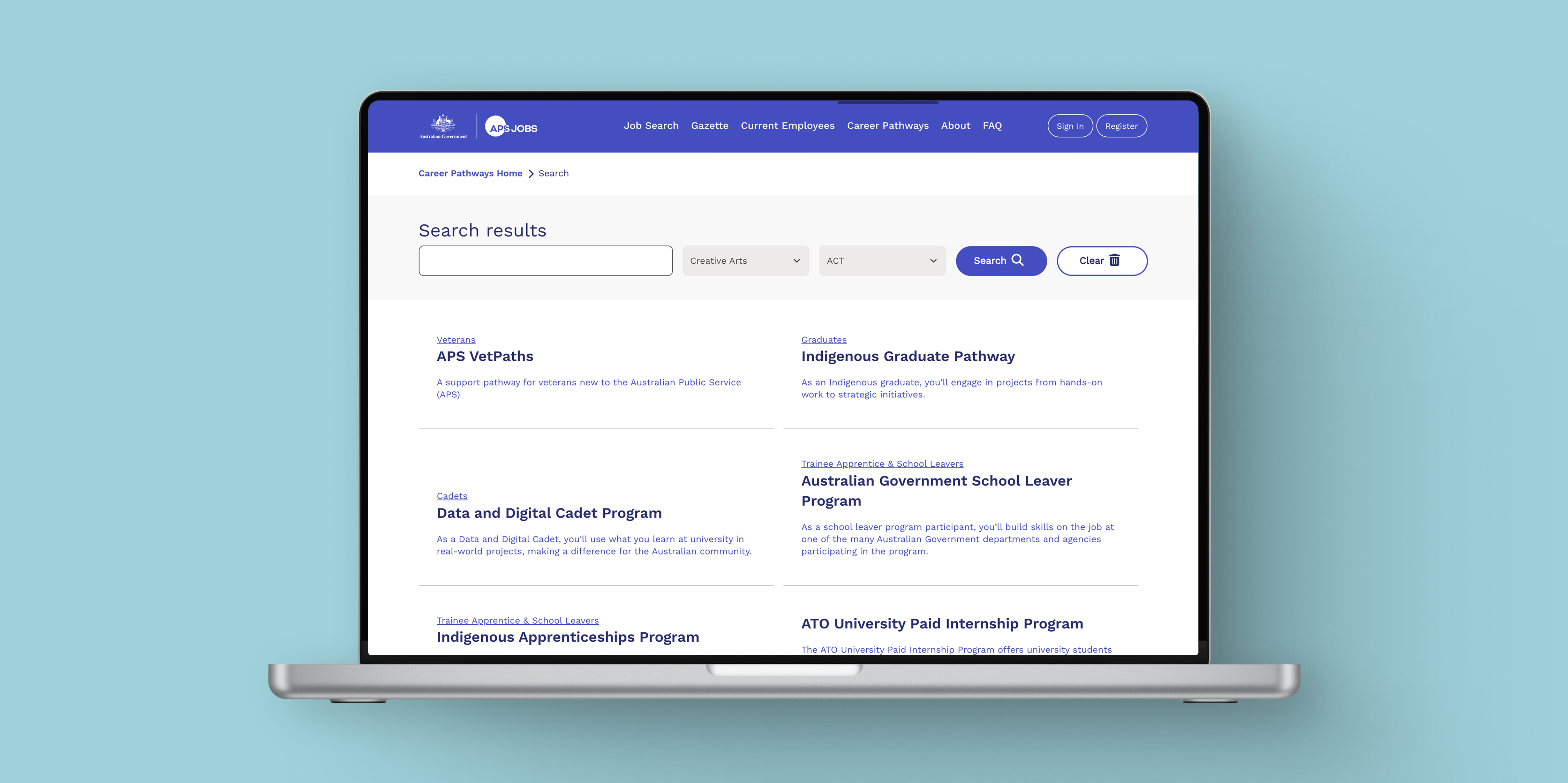 The APSJobs Career Pathways site is now positioned to support growing recuitment initiatives across Government. Our work laid the foundation for a seamless, user-first experience that reflects the modern, inclusive, and diverse nature of the Australian Public Service.